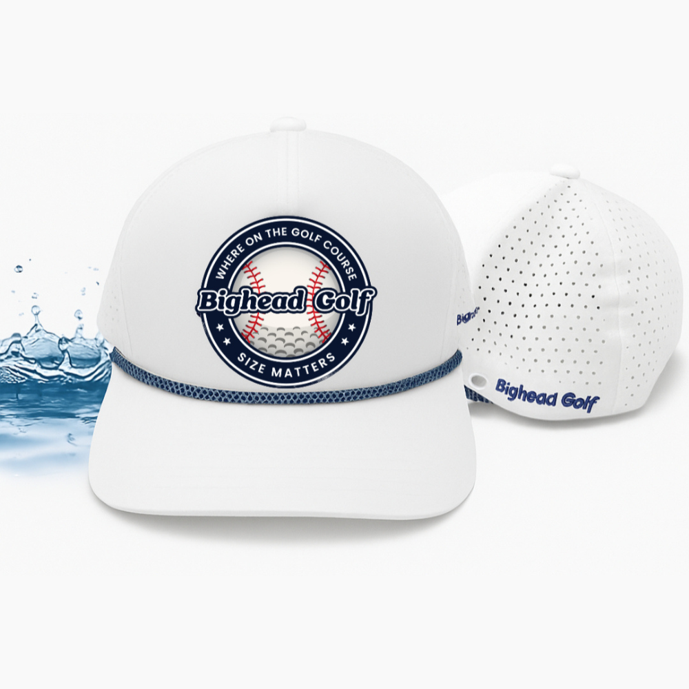 The Bighead Golf Performance Rope Hap is made from waterproof Performance Fabric Crafted from a durable polyester and spandex blend, this hat is built to repel sweat and rain so you stay dry, round after round. With its perforated back panels. Our performance cap is designed for maximum airflow and breathability on hot days.